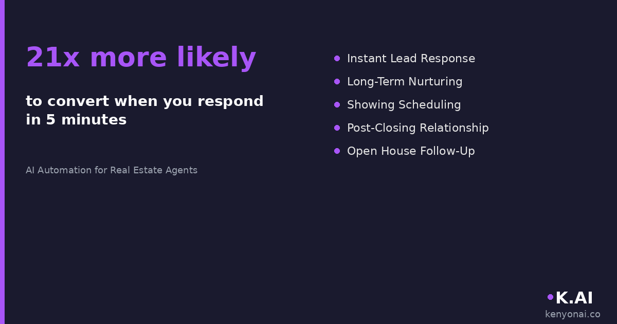 You’re at your kid’s soccer game when your phone buzzes. New Zillow lead. You step away to call them back. No answer. You leave a voicemail. They never call back. Three weeks later, you see that same buyer close on a house with a different agent. One who responded in 2 minutes instead of 20. This is the reality of real estate in 2026. Speed wins. Follow-up wins. But you can’t be glued to your phone 24/7 and still have a life. ...
