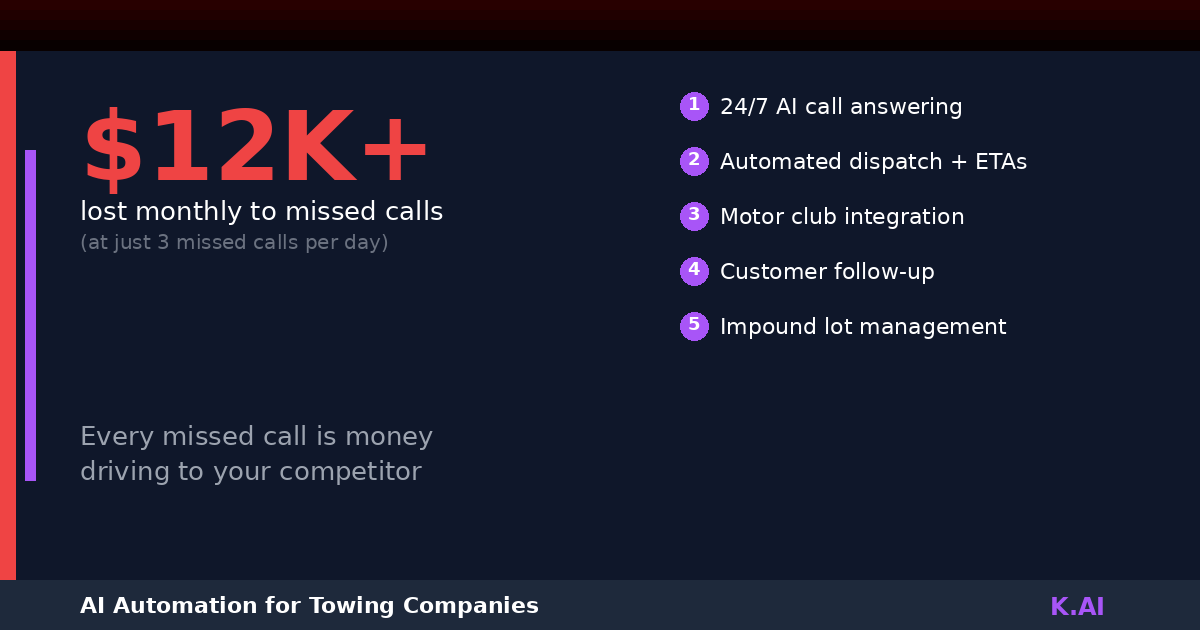 AI Automation for Towing Companies: Every Missed Call Is Money Driving Away