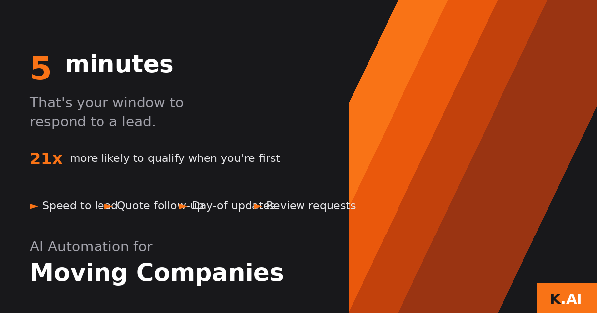 Someone needs to move in two weeks. They search online, fill out quote forms on three different sites, and wait for callbacks. The first company to call gets a 20-minute conversation. They’re interested, engaged, taking notes. By the time the second company calls two hours later, they’re already leaning toward the first one. By company three, they’re just collecting backup options. Moving is a first-mover business. Speed to lead determines who gets the job. But you can’t have someone sitting by the phone 24/7, and quote requests come in at all hours. ...
