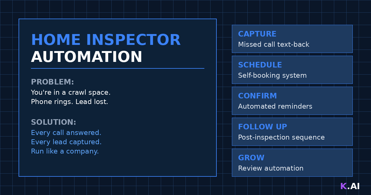 You’re in a crawl space checking foundation work when your phone buzzes. A real estate agent wants to schedule an inspection for tomorrow. You can’t answer because you’re covered in dirt and holding a flashlight. By the time you crawl out and call back, they’ve moved on to another inspector. This is the home inspection paradox. You need to be in attics and crawl spaces doing inspections to make money. But being unavailable means missing the calls that generate that work in the first place. ...